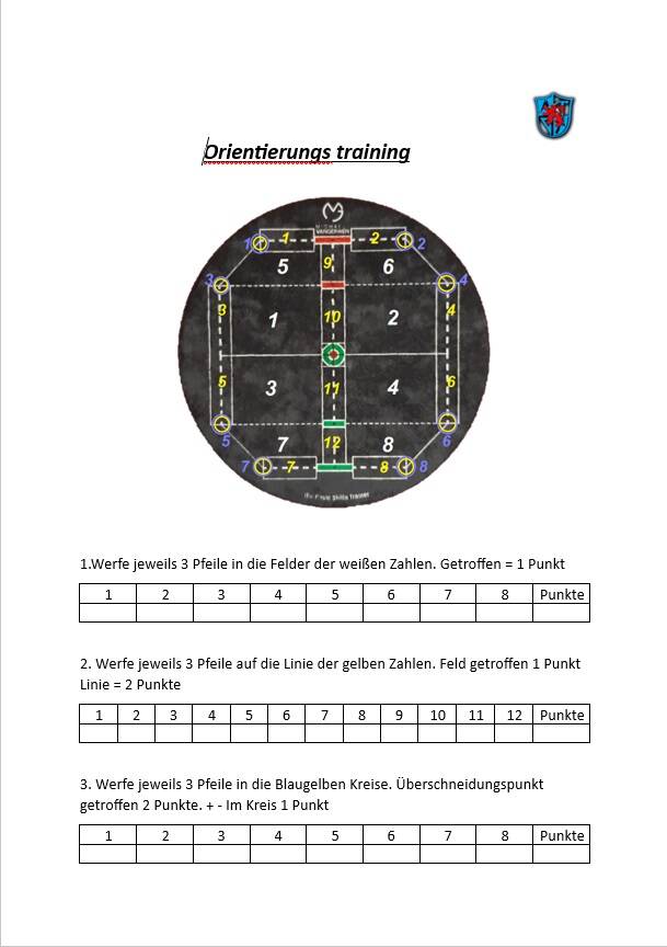 mit der NICHT Werferhand einen Pfeil auf die Scheibe werfen